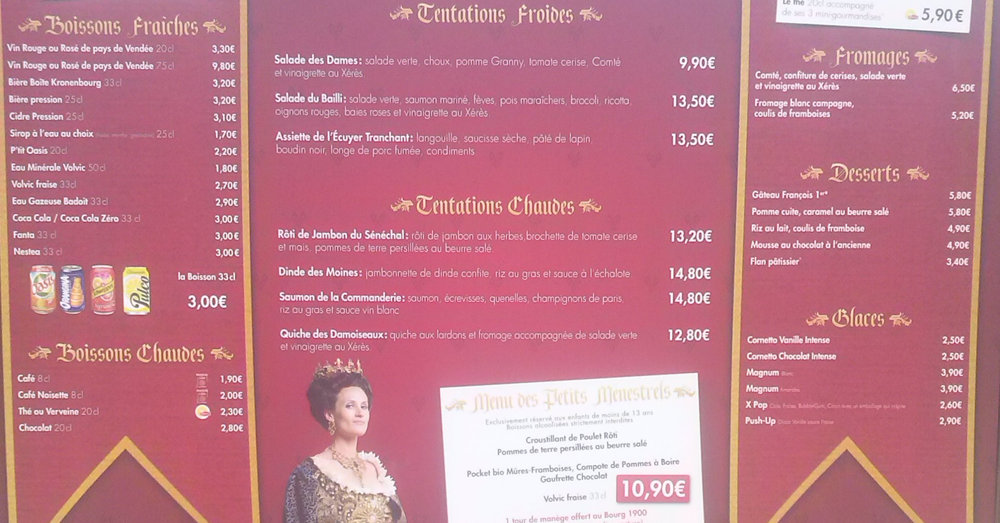 salut jambalaya, j'avais posé le même genre de question il y a peu de temps,tu aura ta réponse dans la rubrique GRAND PARC, l'échansonnerie.... Florian y a inséré la carte du restaurant.Bonne soirée